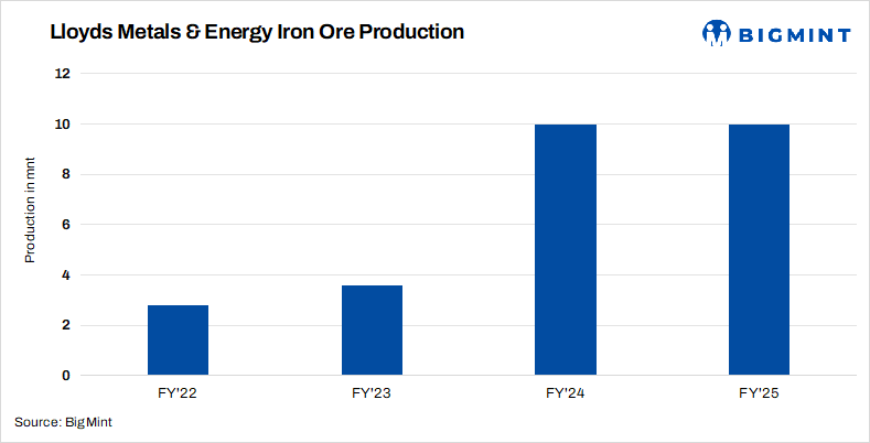 Lloyds Metals and Energy produced 10 mnt of iron ore in FY’25, unchanged from the previous fiscal year. Meanwhile, direct reduced iron (DRI) production stood at 308,243 t in FY’25, higher by 18% as against 261,836 t in the year-ago period. This marks the company’s highest-ever sponge iron production in a fiscal year.