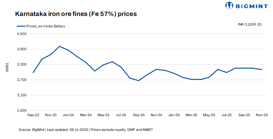 In line with the prevailing trend, NMDC rolled over its base prices for iron ore from its Donimalai mines in the auction held on 4 November 2025, signalling the absence of any significant shift in fundamentals.