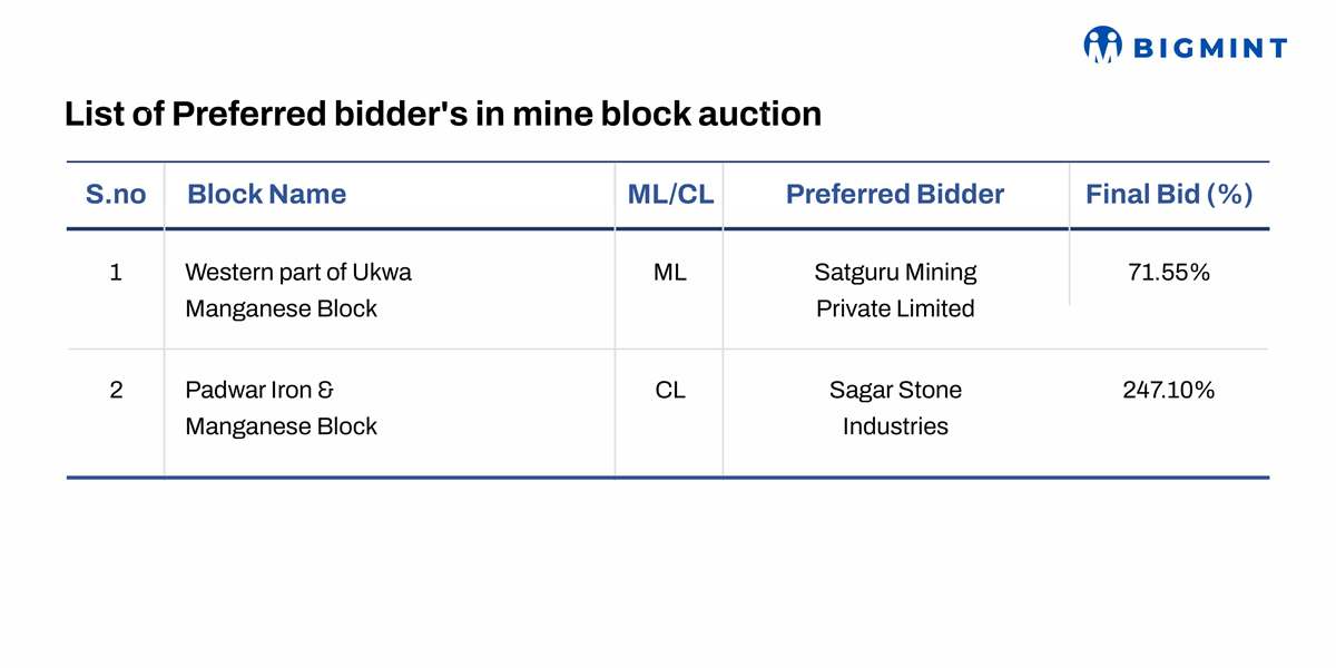 The Madhya Pradesh Mineral Resources Department has announced the preferred bidders for Phase XIV mineral block auctions.