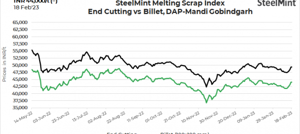 SteelMint’s domestic steel scrap (end-cutting) index remained stable at INR 44,000/t DAP Mandi Gobindgarh on 18 February, 2023.