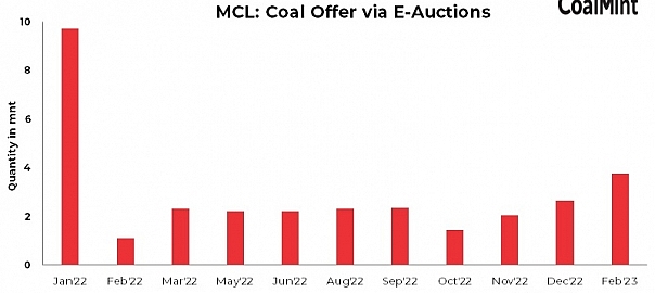 Mahanadi Coalfields Ltd (MCL) has offered 2.05 mnt of coal for sales via spot auction on 28 Feb’23. The product mix includes mixed bag of non-coking coal grades in the range of G8-G14. Notably, this is the second auction scheduled for Feb’23 after no auctions were held in Jan’23. Earlier, the company had put 1.7 mnt of coal for sales on 1 Feb’23.