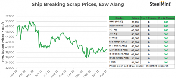 Ship-breaking melting scrap prices in Alang, Gujarat, continued to remain stable for the fifth successive day. HMS (80:20) prices opened at INR 39,100/t exy today. Semis and finished steel trade remained dull yesterday in key markets of northern and western India. Despite this, buying inquiries for scrap remained active at current prices. This prompted suppliers to keep offers stable.