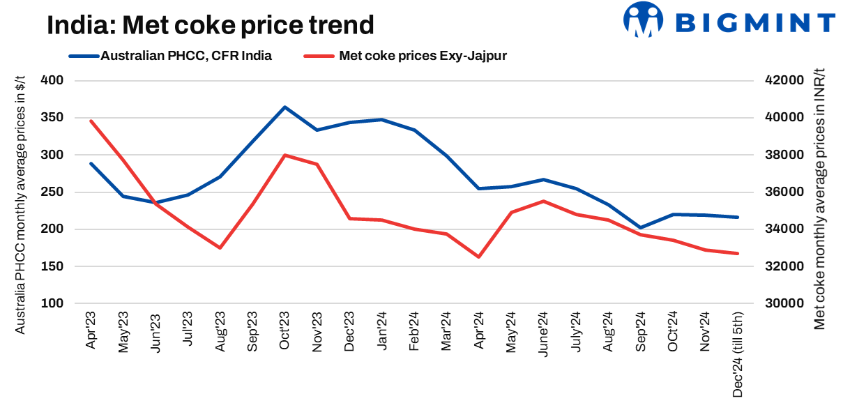 Indian met coke prices may remain under pressure due to weak demand and expected price cuts. Competitive import offers could further weigh on domestic prices, while the coking coal market faces pressure from limited buying interest. Any recovery will depend on improved demand from China and change in dynamics of the Indian market.
