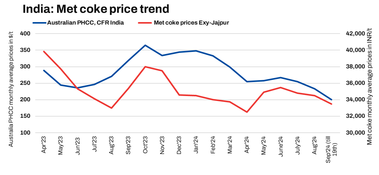 The Indian met coke market is expected to remain under pressure on subdued demand and comparatively inexpensive import offers. However, the turnaround in the Chinese met coke market may provide a push to domestic prices, provided demand picks up.