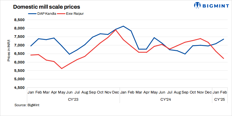 - Kandla: Prices remained unchanged at INR 7,450/t DAP, with 4,900 t traded at INR 7,200-7,600/t DAP.