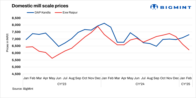 - Kandla: Prices remained unchanged at INR 7,400/t DAP, with 9,850 t traded at INR 7,200-7,550/t DAP.