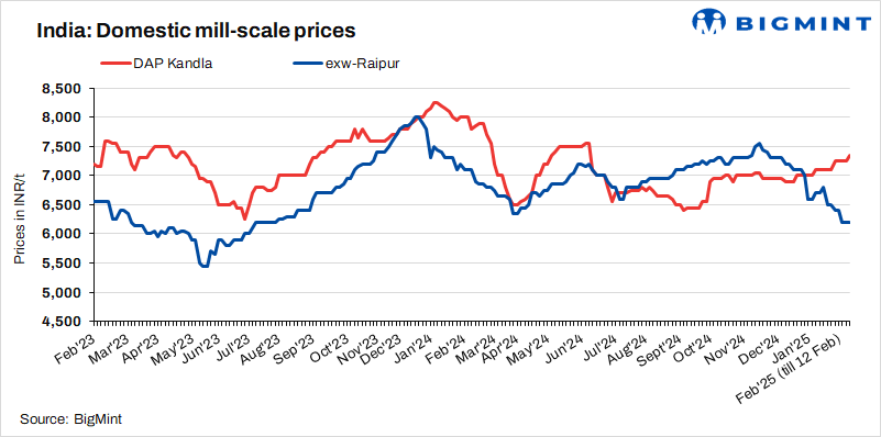 - Raipur: Prices stood stable at INR 6,200/t exw, with 3,130 t deal concluded this week.