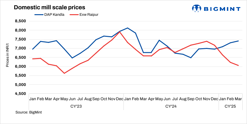 Mill scale prices in India showed mixed trends on 5 Mar’25 against the last assessment on 1 Mar.