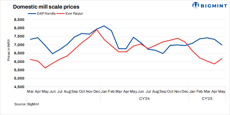 - Jalna: Prices remained unchanged at INR 6,200/t exw, with 8,000 t traded at INR 6,200/t.