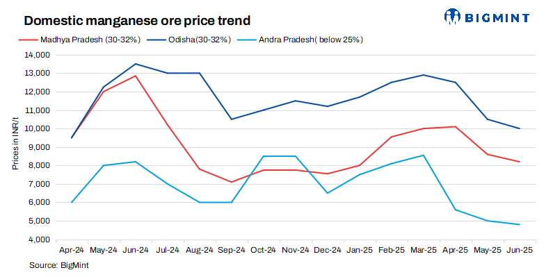 Indian manganese ore producers reduced their June 2025 offers, aligning with MOIL’s latest price cut, amid bearish global sentiment, subdued steel sector demand, and ongoing weakness in both domestic consumption and international market dynamics.
