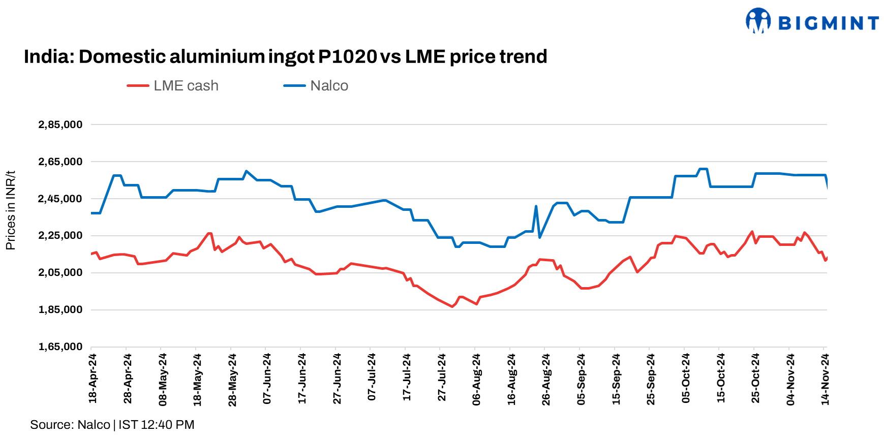 aluminium futures LME aluminium ingot prices aluminium manufacturers aluminium market conditions aluminium market participants aluminium market update aluminium price $96/t drop aluminium price reduction aluminium price trends aluminium prices November 2024 ex-works aluminium prices GST exclusion aluminium prices INR aluminium prices LME aluminium price Nalco aluminium prices NALCO price revision P1020 aluminium primary aluminium ingot