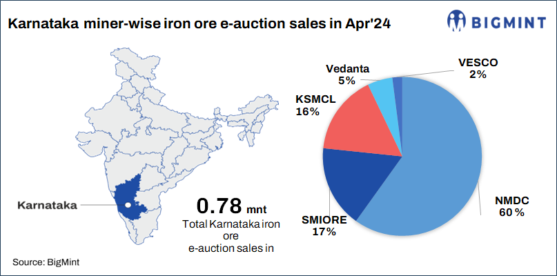 NMDC had an auction for 224,000 t of iron ore on 22 May’24 from its Kumaraswamy mines.