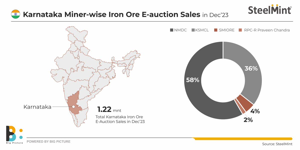 NMDC Donimalai has scheduled an auction for 4,000 t lumps (10-40 mm, Fe 59%) and 24,000 t fines (Fe 59%) on 25 Jan’24. The floor prices are yet to be declared by the company. In its previous auction on 17 Jan’24, 20,000 t of fines (Fe 59%) and 8,000 t of lumps (10-40 mm, Fe 59%) got booked at base price of INR 3,542/t and INR 3,694/t, respectively. Prices are on FOR, ex-stockpile/mines basis, including royalty, DMF and NMET.