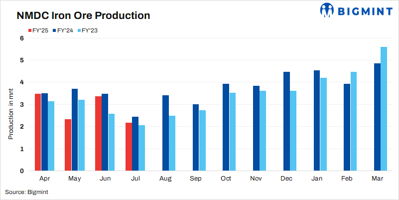 India: NMDC’s iron ore production drops over 35% m-o-m in Jul’24