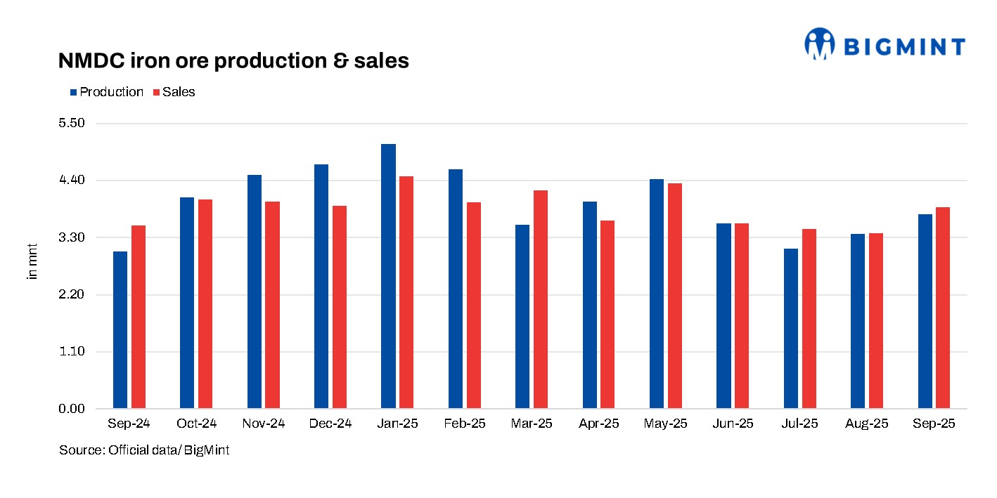 India: NMDC’s iron ore production rises 11% m-o-m in Sep’25