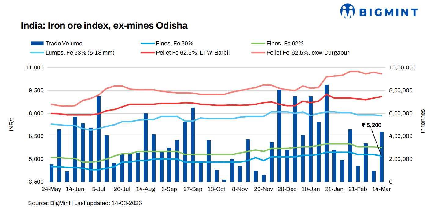 In addition, major steelmakers are reportedly holding back from large-scale procurement ahead of the upcoming auction by the Odisha Mining Corporation (OMC), which is scheduled for 19 March. The auction is expected to provide clarity on price direction and supply availability for the coming weeks.