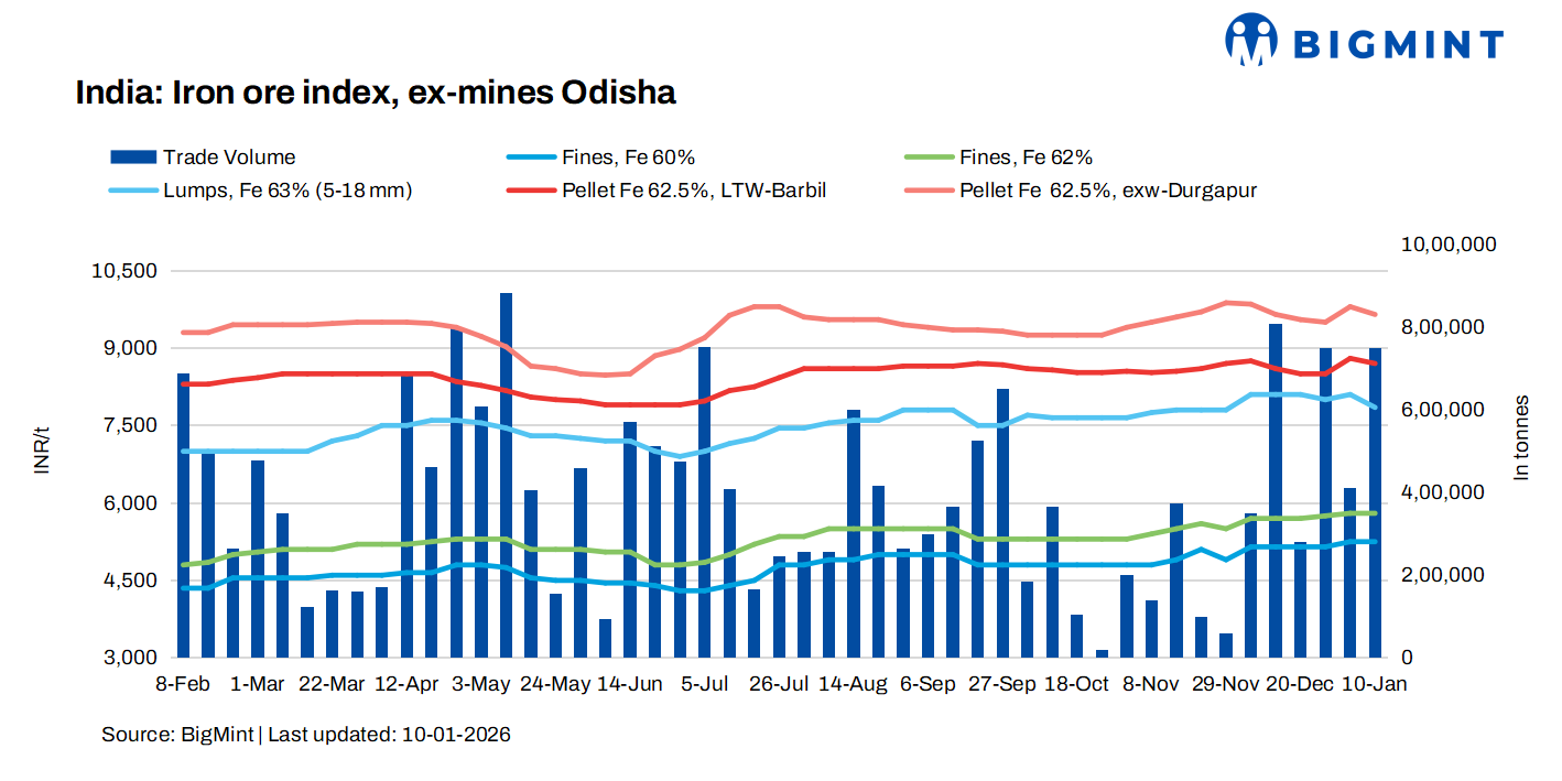 Iron ore prices in the Odisha market remained largely stable this week, as assessed on 10 January, particularly in the fines segment, while lump prices witnessed a slight correction following weakening seen in the downstream steel market. Market participants indicated that overall trade activity continued as buyers stocked up on need-basis, with bulk transactions largely absent during the week.