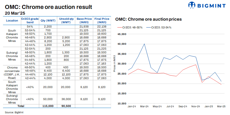 India: OMC’s chrome ore auction sees bids drop m-o-m amid market slowdown