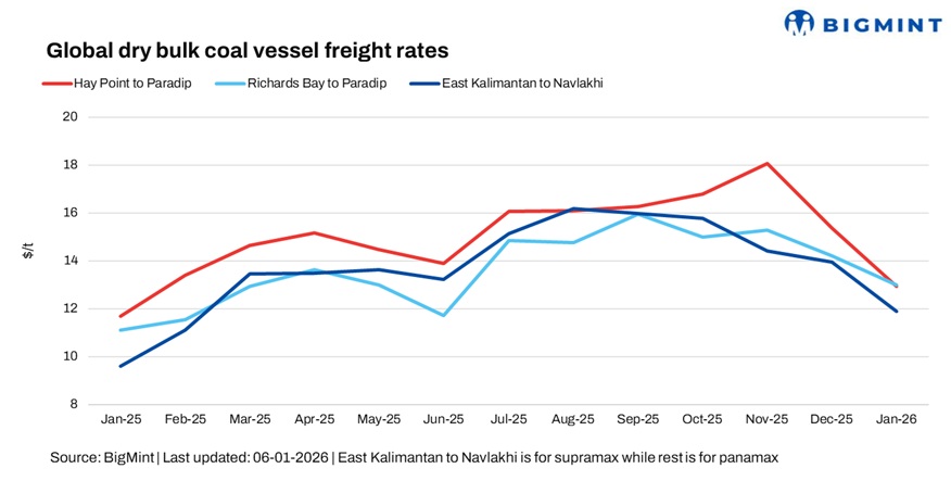 Coal freight rates to India were mixed w-o-w, with the Australia-India and South Africa-India routes witnessing firming up of rates on higher-level fixtures, while rates on Indonesia-India route continued to soften on limited activity.