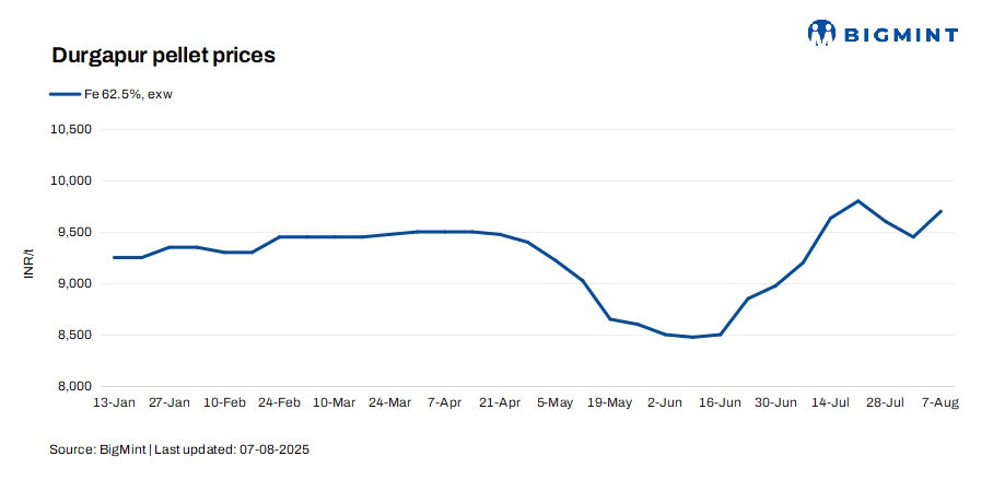 Durgapur-based pellet producers hiked offers for Fe62.5% (+/-0.5%) material by INR 200-300/t ($2.5-3.5/t) to INR 9,600-9,700/t ($110-111/t) exw. The increase in offers led to a significant rise in iron ore prices due to a shortage in the eastern region, as heavy rains disrupted production. Meanwhile, PDRI prices in Durgapur rose by INR 150/t ($2/t) w-o-w to INR 23,500/t ($269/t) exw.