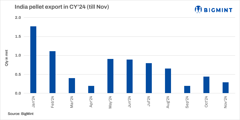 A southern India-based pellet maker concluded an export deal for around 50,000 t (Fe 63%, 8% Al2O3+SiO2) through a tender last week, sources informed BigMint. Seaborne buyers showed interest in premium material, and it was heard that the deal was concluded at $105-106/t FOB India. Notably, the pellet export market has remained muted in the last few weeks amid bid-offer disparities.