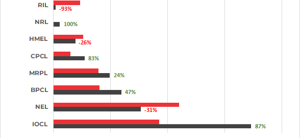 On a monthly basis, the highest sales were recorded by IOCL at 0.346 mnt, up 87.4% y-o-y followed by NEL and BPCL at 0.153 and 0.119 mnt respectively. The maximum decline in sales was recorded by RIL at 92.7%.