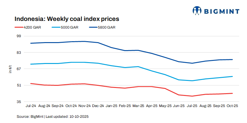 The Indian portside market for Indonesian-origin thermal coal remained largely stable during the week ending 3 October 2025, as seasonal factors and muted industrial demand weighed on buying activity. Traders reported limited movement across most grades, reflecting cautious sentiment and sufficient stock availability at ports.