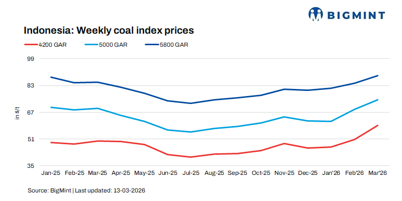 Indian portside prices of Indonesian-origin thermal coal registered stability on 13 March 2026 after early gain, driven by uncertainty surrounding potential Indonesian export policies and heightened geopolitical tensions between the US and Iran. The lack of clarity regarding export approvals from Indonesia, combined with broader global uncertainties, has created a volatile trading environment.
