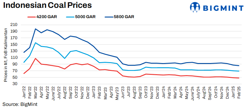 Meanwhile, the Indonesian low-calorific value (CV) thermal coal market continued to face pressure due to an uncertain price outlook, which led to increased interest in index-linked trades. Despite a post-Lunar New Year uptick in coal consumption at Chinese coastal utilities, demand for seaborne coal has yet to show any significant improvement. However, logistical issues and loading delays in Indonesia’s Kalimantan region, exacerbated by heavy rainfall, tightened supply, providing support to the market.
