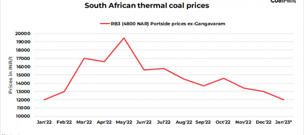 The portside prices may come down further if imported thermal coal prices fall. Given the ongoing scenario of sluggish demand in the EU market and also with winter seen weakening by February-end in the northern hemisphere, South African thermal coal prices are likely to fall in the coming months.
