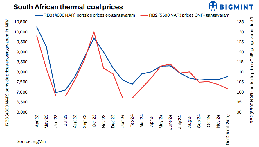 India: Portside South African thermal coal prices drop w-o-w amid rising stocks, CIL auctions