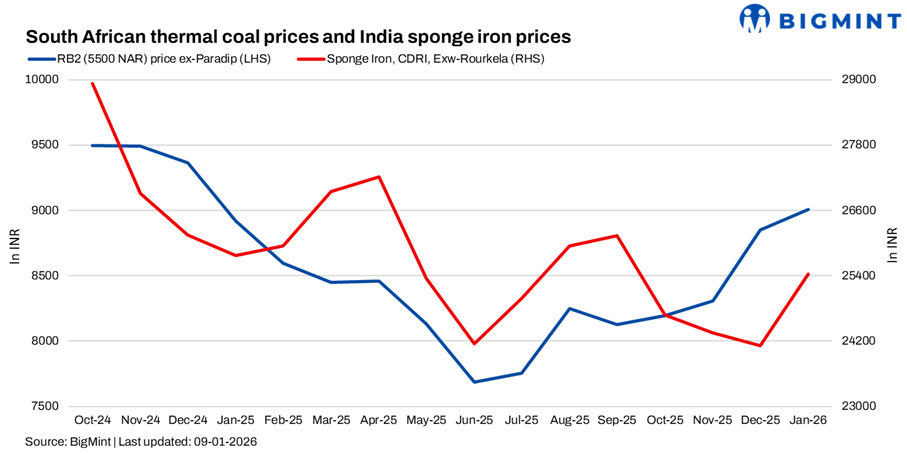 South African thermal coal offers may remain firm in the near term due to seasonal export tightness and gradual enquiry improvement. However, subdued sponge iron prices and ample domestic coal availability are likely to limit deal closures at elevated levels.
