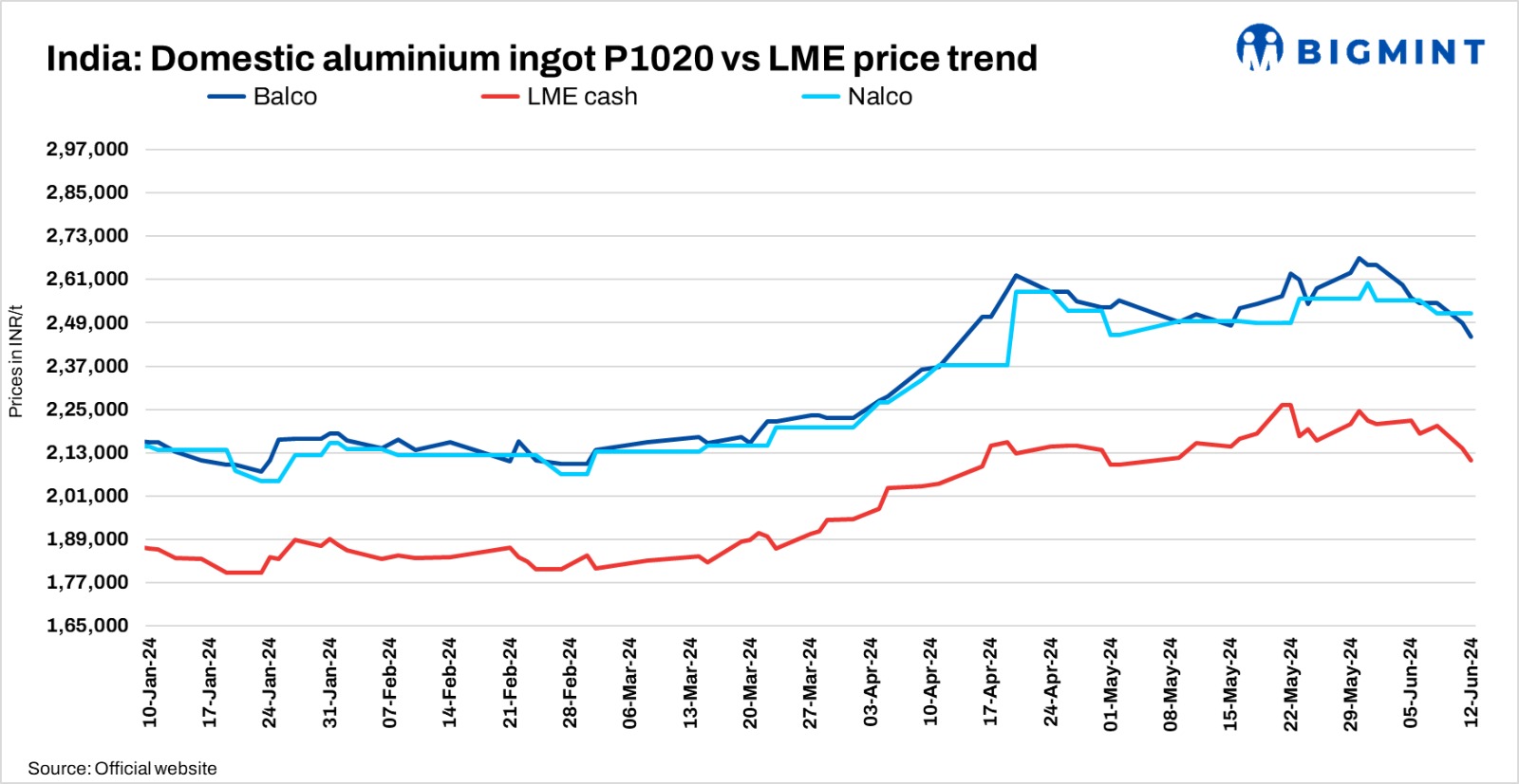 India: Primary aluminium producers cut ingot prices by INR 3,750/t ($44/t)