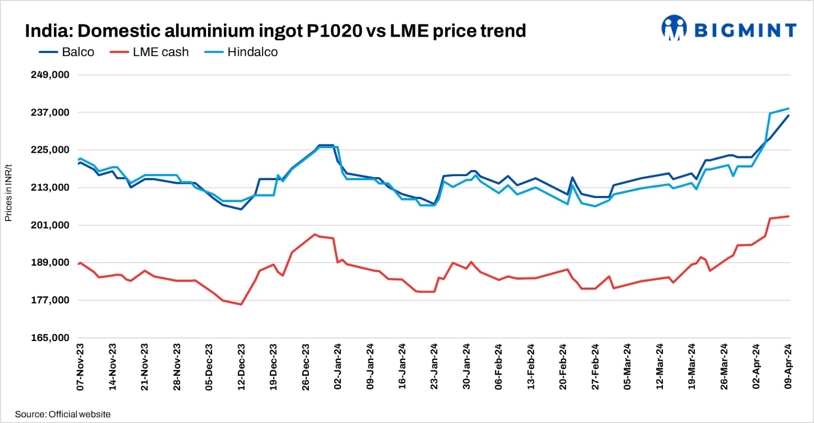 India: Primary aluminium producers hike ingot prices by up to INR 1,750/t ($21/t)