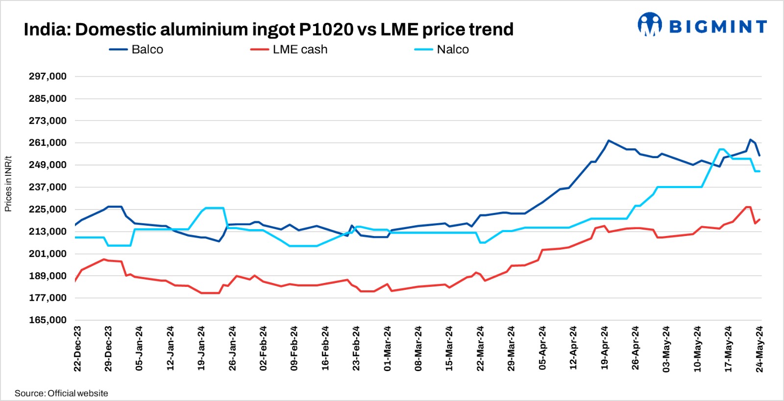India’s primary aluminium producers have increased ingot (P1020, 99.7%) prices by up to INR 6,600/t ($79/t) recently. Nalco’s prices were at INR 255,700/t ($3,075/t), up by INR 6,600/t. Balco’s prices were at INR 254,250/t ($3,058/t). All prices were ex-works and exclude GST. At the time of reporting, aluminium futures on LME stood at $2,650/t.