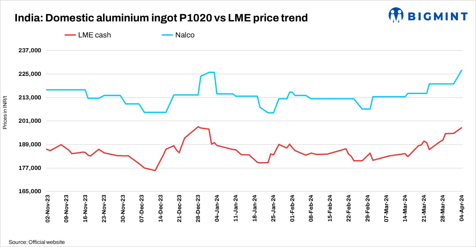 India: Primary aluminium producers hike ingot prices by up to INR 7,500/t ($90/t)
