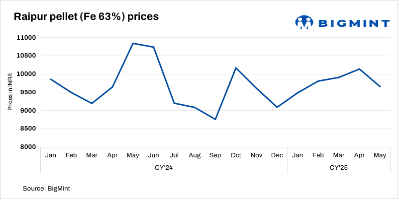 Raipur-based pellet makers reduced their offers for Fe 62.5/63% (+/_0.5%) material by INR 200/t ($2.5/t) to INR 9,100-9,300/t ($107-109/t) exw today. The recent m-o-m drop in bids at the OMC fines auction and weaker market sentiments led to a fall in pellet offers. Meanwhile, competitive offers from Odisha also contributed to the drop in Raipur’s tags.