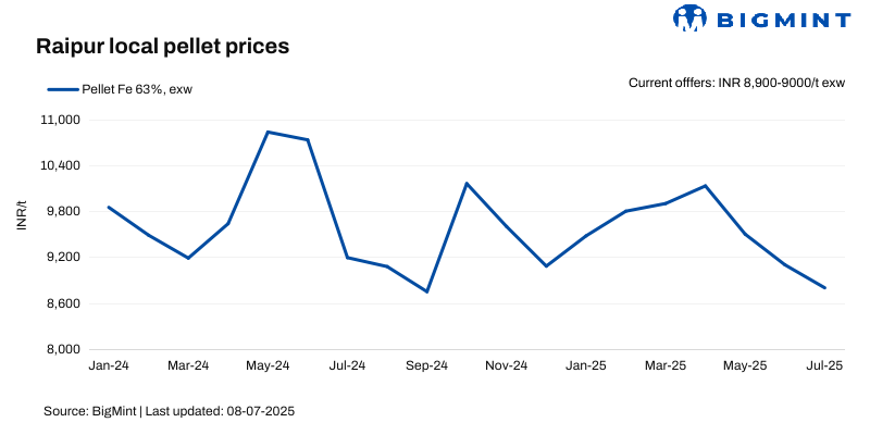 Raipur-based pellet producers hiked their offers for Fe 62/63% (+/_0.5%) material by INR 200/t ($2.5/t) to INR 8,900-9,000/t ($105-106/t) exw. Active trades of approximately 150,000 t were concluded last week by local sellers, amid expectations of higher seasonal demand during the monsoon. Meanwhile, no trades have been recorded at the revised prices so far.