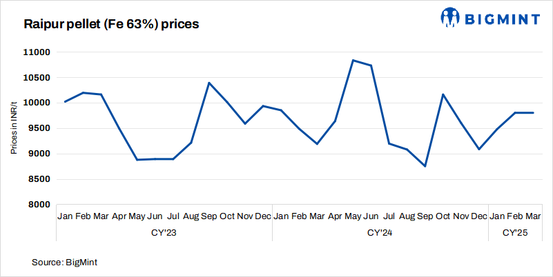Raipur-based producers raised their offers for Fe 63% (+/_0.5%) pellets by INR 100-200/t ($1-2/t) to INR 9,900-10,000/t ($114-116/t) exw-Raipur today, with no deals recorded. The recent increase in base prices for the upcoming OMC auction and improved market sentiment in the sponge and finished steel segments supported pellet prices in the Raipur region.