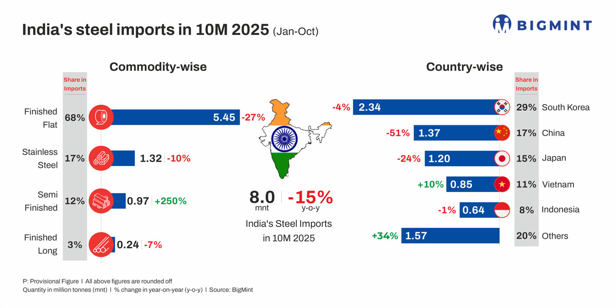 Morning Brief: Despite steel imports dropping significantly in January-October 2025 (10MCY’25), India remained a net steel importer, as per BigMint data.