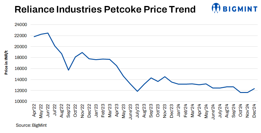 Reliance Industries Ltd (RIL) has raised its pet coke prices to INR 12,323/t for Dec’24, marking an increase of INR 686/t m-o-m over Nov’s INR 11,637/t. The increase in imported pet coke prices and RIL’s limited supply align with rising infrastructure demand post-monsoon.