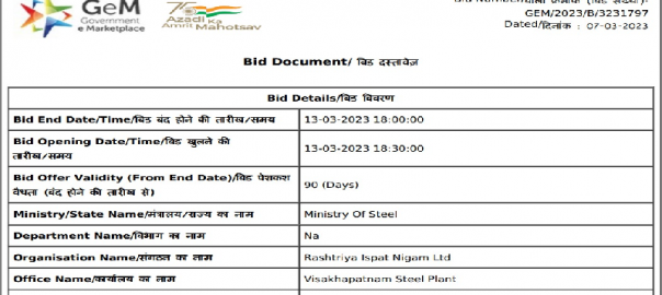Rashtriya Ispat Nigam Ltd (RINL), the corporate entity of Vizag Steel Plant, has invited bids for procurement of 370 t of silico manganese (grade: 60-15 and size: 25-50 mm). The last date of bid submission is 13 Mar’23. SteelMint’s assessment of silico manganese prices stood at INR 74,000/t exw-Vizag on 10 Mar’23.