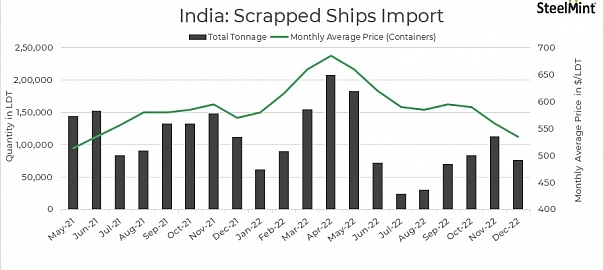 India: Scrap ship imports decrease in Alang by 33% m-o-m in Dec’22
