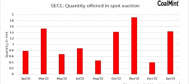 South Eastern Coalfields Ltd (SECL) will conduct a spot e-auction for 1.44 mnt of non-coking coal on 16 Jan’23. The grades offered are G5, G6, G8 to G11, G14 and G15, of which G14 and G15 are almost 80% of the total quantity offered. Meanwhile, the offering from Gare Pelma IV/ 2&3 is the highest at 600,000 t.