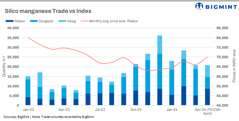 Indian silico manganese players have raised offers today by INR 2000-3000/t d-o-d following a hike in imported manganese ore prices. Fresh offers for 60-14 SiMn are heard around INR 79,000-81,000/t exw Raipur. However, deals are yet to be concluded at higher offers, informed sources.