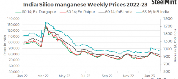Silico manganese prices in India inched down as domestic and export demand for manganese alloys weakened. Additionally, manganese ore prices have been stable for quite some time, which has allowed buyers to take advantage of lower prices.