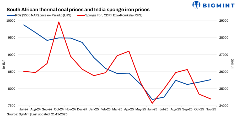 Defying the broader weakness in Indian thermal coal demand, sponge iron prices recently gained momentum, resulting in improved buying inquiries for specific South African coal grades. BigMint’s C-DRI index (ex-Rourkela) stood at INR 24,200/t.