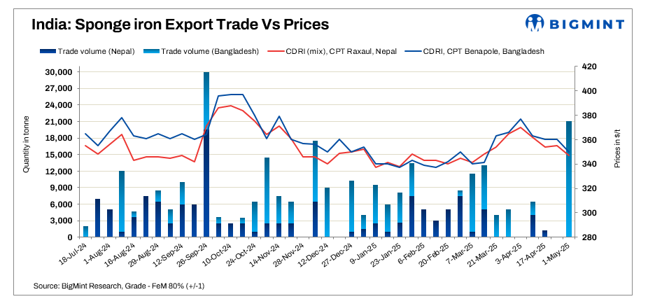India: Sponge iron export offers down $8-10/t w-o-w