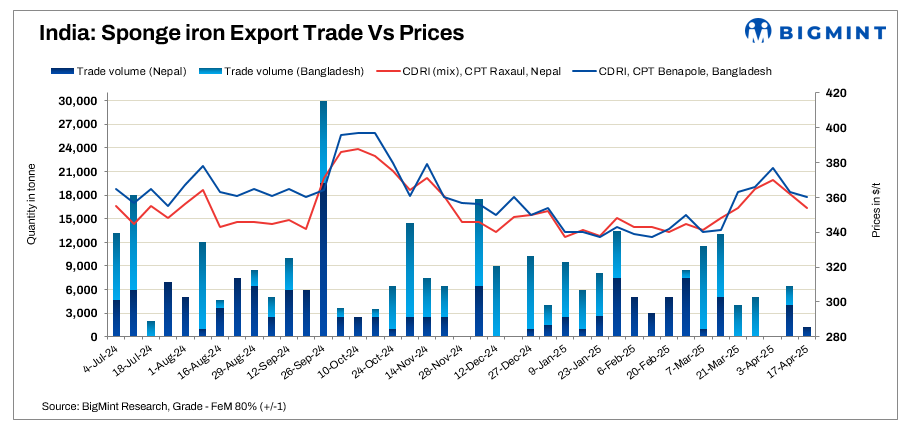 India’s sponge iron export offers to Nepal and Bangladesh declined w-o-w amid tepid demand, limited inquiries, and weakening domestic prices.