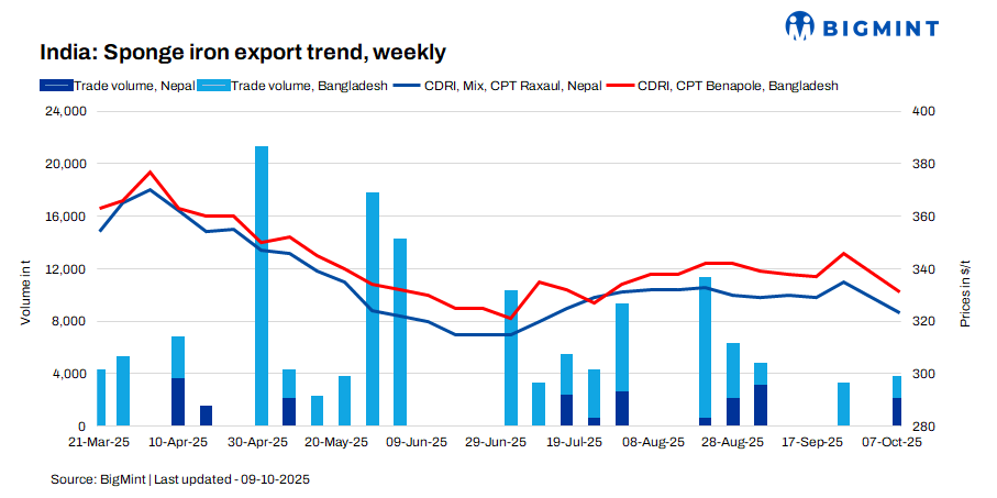 India: Sponge iron export prices drop by $12-15/t w-o-w on limited demand
